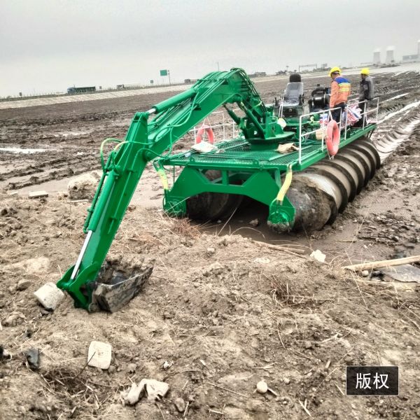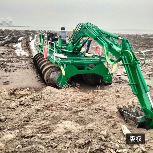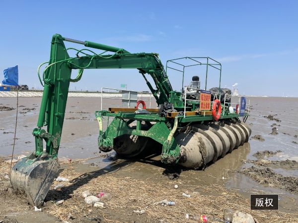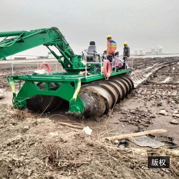 今天為大家介紹一款水陸兩棲神器,螺旋互花米草收割設(shè)備主要應(yīng)用于灘涂、泥地 、沼澤、淺海等。它的工作原理兩個(gè)螺旋轉(zhuǎn)筒產(chǎn)生直線(xiàn)向前的驅(qū)動(dòng)力,就像擰螺絲的道理一樣,帶動(dòng)我們整個(gè)機(jī)器向前行駛。它的兩個(gè)螺旋轉(zhuǎn)筒是中空的,可以漂浮在海面上行駛。它用于灘涂收割互花米草